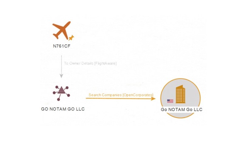From an official report and a news piece related to the event, we started from an aircraft’s tail number that led us to a company that is most likely to be a shell company. We were also able to identify a person of interest who is likely to be part of the criminal activity.